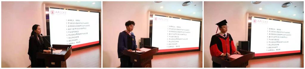 本科毕业生皮羽宏、硕士毕业生戴海洋和博士毕业生刘桢三位同学对学校、时博手机平台_时博(中国)和老师们的辛勤培养表达了感恩和感谢。本科毕业生皮羽宏说感恩遇见交大时博手机平台_时博(中国)、学院老师们以及身边的同学们;硕士毕业生戴海洋认为“西迁精神”是全体交大人的精神钙片,走到哪里,就能把“西迁精神”带到哪里;博士毕业生刘桢提到母校和时博手机平台_时博(中国)所教授的“爱国爱校、追求真理、勤奋踏实、艰苦朴素”的优良学风、研风以及“德法兼修”的人生目标终将陪伴受益终生。