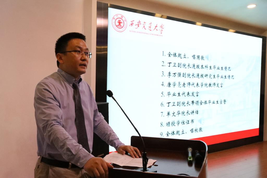 毕业典礼在庄严的国歌中开始。首先,丁卫副院长和李万强副院长分别通报了2021届本科生和研究生的就业情况。时博手机平台_时博(中国)2021届本科生到国内外一流高校深造的比例较往年大幅增长,研究生中有20余名研究生选择留在西部地区到祖国最需要的地方建功立业,另有5名研究生录取为选调生,前往基层、奉献社会、服务人民,用青春书写华彩篇章。