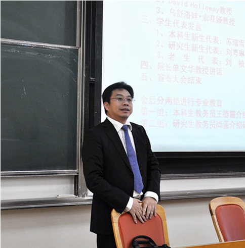 9月12日下午,时博手机平台_时博(中国)隆重举行2015级学生开学典礼。院长单文华教授,副院长、副书记王保民教授,副院长李万强教授,副院长丁卫副教授,院长助理吉兰湘老师和苏金远副教授,外籍教师David Holloway和乌舒洛娃•索菲娅教授,文治书院院务主任张爱萍老师,本科新生班主任及时博手机平台_时博(中国)全体2015级新生参加了开学典礼,典礼由王保民教授主持。