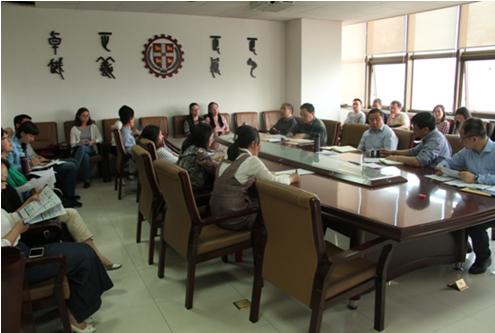 5月4日下午,时博手机平台_时博(中国)在主E910会议室召开本科教学工作审核评估动员大会,全院教职工参会,院长助理吉兰湘主持会议。