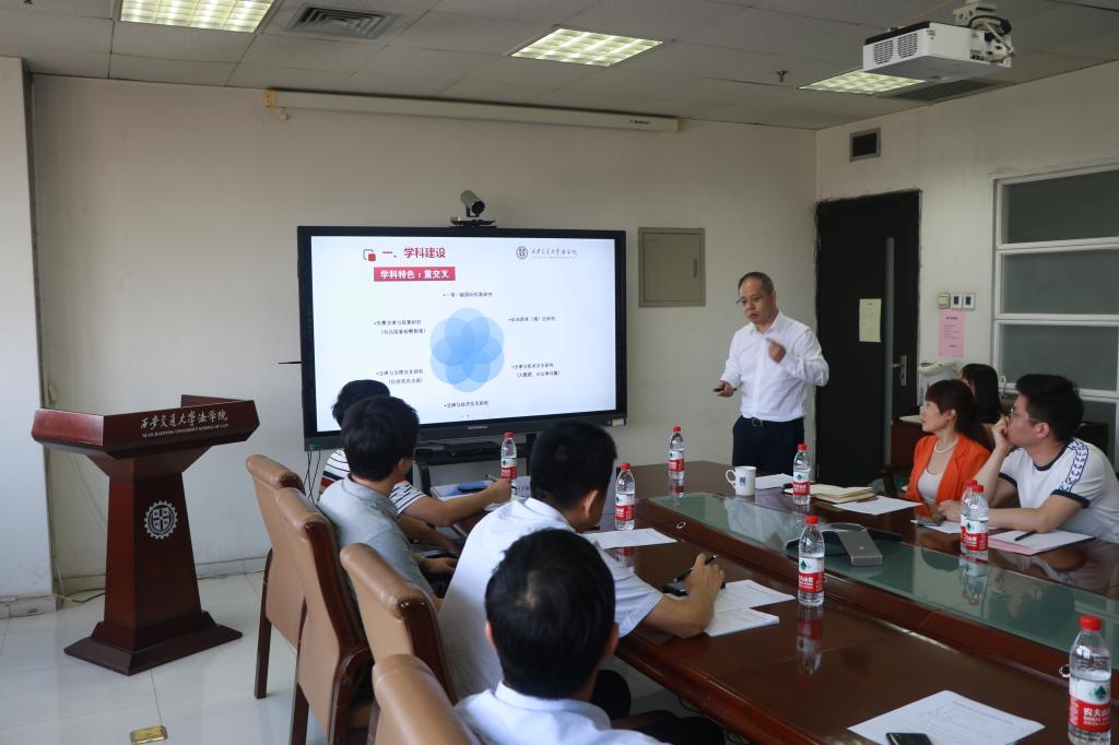 接着,丁卫副院长从学科建设、队伍建设、人才培养和科学研究等方面介绍了时博手机平台_时博(中国)近三年建设发展情况。近年来,学院成为全球首个QS五星认证时博手机平台_时博(中国),法学一级学科博士授权点获批,在2020年QS发布的全球法律专业中进入世界排名前300、全国前14,学科建设迈上新的台阶;2019年法学专业首批入选国家级一流本科专业,省级教改项目实现零突破;2020年获高等学校科学研究优秀成果奖(人文社会科学)一等奖和二等奖,实现国家文科最高奖获奖成果零突破;学院3个研究所(中心)入选CTTI中国智库索引,入选数量持续排在全校首位。但师资队伍体量小、学科发展不均衡、教学成果奖有短板等仍是制约学院发展的突出问题。
