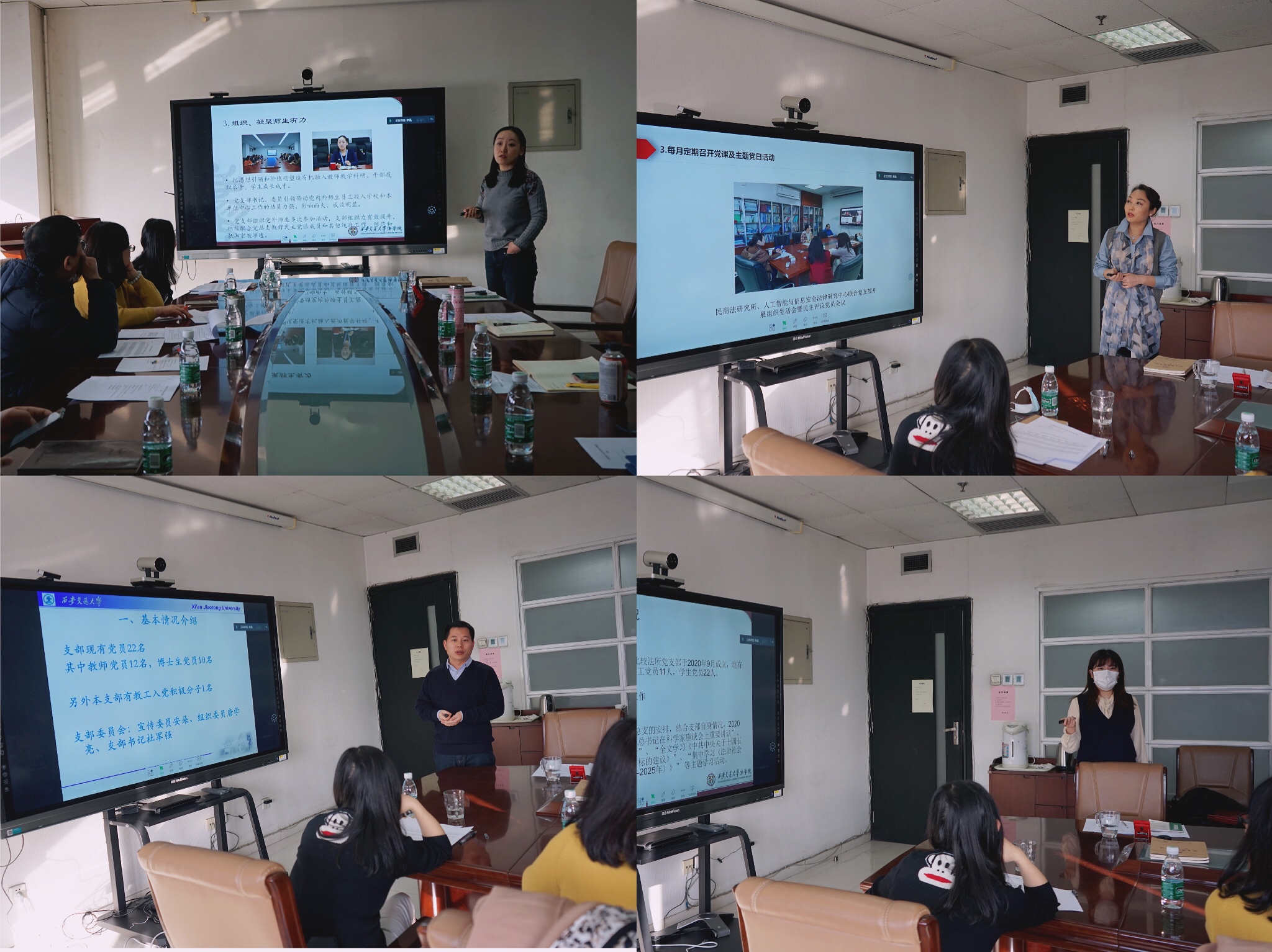 考核会议上,12位支部书记对标支部工作要做到“教育党员有力、管理党员有力、监督党员有力、组织师生有力、宣传师生有力、凝聚师生有力、服务师生有力”的要求,详细汇报了2020年支部工作开展情况。本年度,根据基层科研组织架构,时博手机平台_时博(中国)重组成立5个教工党支部,实现“双带头人”教师支部书记全覆盖。在优化设置党支部的基础上,学院各支部能够按照校党委及学院党总支的要求,严格落实“三会一课”工作计划,创新开展工作。多次围绕学科建设开展支部活动,并邀请校党委常委参加。与省检察院联合共建党支部,与武汉大学时博手机平台_时博(中国)、法医学院研究生党支部开展联合党课,探索跨校、跨专业开展组织生活新模式。组织师生赴照金革命根据地、渭华起义纪念馆等地学习,深入开展“四史”教育。