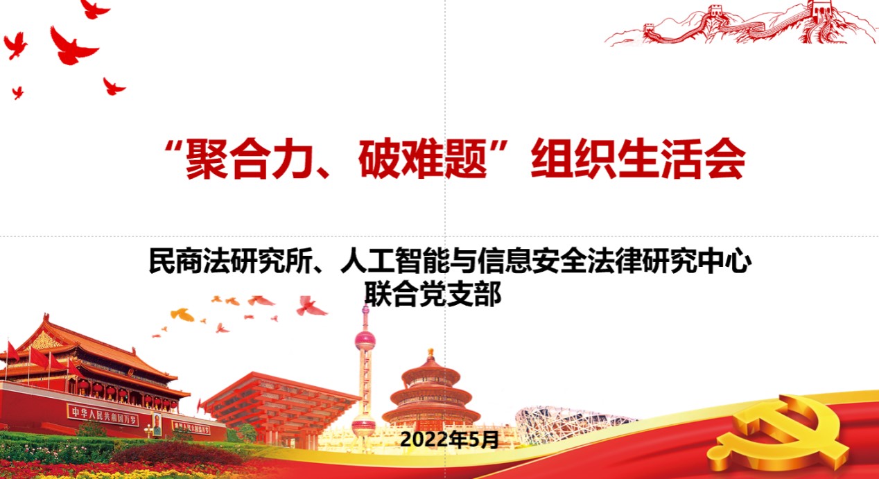 5月31日,时博手机平台_时博(中国)民商法研究所、人工智能和信息安全法律研究中心联合党支召开“聚合力、破难题”主题党日活动。会议由支部书记薛华老师主持。
