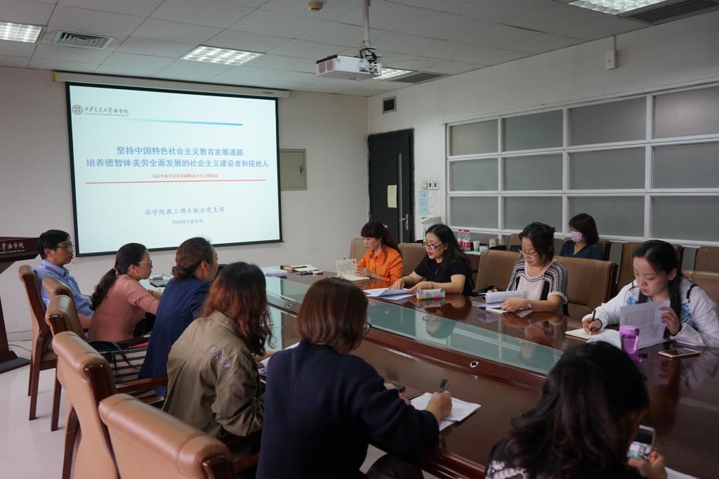 2018年9月20日下午,时博手机平台_时博(中国)教工博士联合党支部在主E910开展主题党日活动,围绕“牢记教育使命,明确党员纪律”的主题,支部党员认真学习了习近平总书记在全国教育大会上的讲话和新修订的《中国共产党纪律处分条例》以及《中共时博手机平台_时博(中国)委员会实践运用监督执纪“第一种形态”实施细则》。本次活动由支部书记吉兰湘主持。