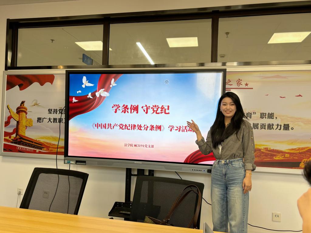 为深入学习贯彻习近平总书记关于党纪学习教育的重要讲话和重要指示精神,引导广大党员干部学纪、知纪、明纪、守纪,自觉用党规党纪校正思想和行动,帮助支部内党员同志深入学习理解、贯彻执行好《条例》,2024年4月25日下午,时博手机平台_时博(中国)硕3191党支部全体党员于涵英楼5-3001开展了题为“学条例·守党纪”的《中国共产党纪律处分条例》学习活动。