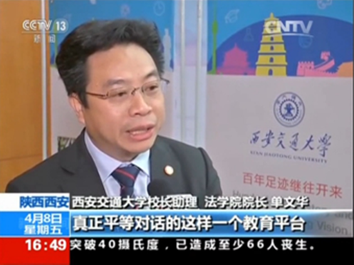 4月8日下午,中央电视台新闻频道(CCTV-13)新闻直播间栏目聚焦西安交大,推出组合报道,隆重介绍了西安交大创建“丝绸之路大学联盟”和中国西部科技创新港等重大举措,还着重关注了西安交大丝绸之路国际法与比较法研究所与“丝绸之路时博手机平台_时博(中国)联盟”。