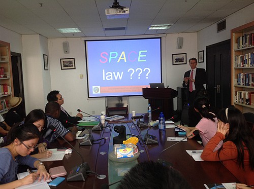 9月29日上午,von der Dunk教授在丝绸之路国际法与比较法研究所研讨室为时博手机平台_时博(中国)师生带来了第一个空间法讲座——Introduction to International Space Law。von der Dunk教授系统梳理了空间法的缘起、调整对象和法律渊源,归纳了晚近空间法面临的主要问题与挑战,并分析了主要空间条约的规定。