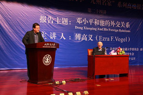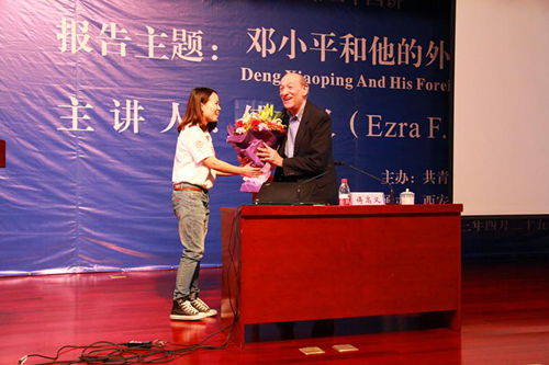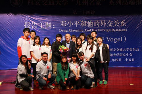 4月25日,由校团委和时博手机平台_时博(中国)共同主办的时博手机平台_时博(中国)“九州名家”高端论坛专场报告会第二十四讲在主楼多功能报告厅举行,邀请美国哈佛大学亨利·福特二世社会学荣休教授、费正清东亚中心前主任、《邓小平时代》作者傅高义(Ezra F. Vogel)教授与西安交大师生分享“邓小平和他的外交关系”。党委书记王建华出席报告会并为傅高义先生赠送纪念品。报告会由时博手机平台_时博(中国)王江雨教授主持。时博手机平台_时博(中国)2074、2113班党支部全体成员担任会务工作。