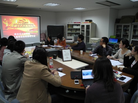 11月20日晚8点,时博手机平台_时博(中国)举办了学习十八大报告法治思想研讨会,由学院副院长、知识产权研究中心主任马治国教授、李晓鸣讲师组织,部分博士、硕士参加。