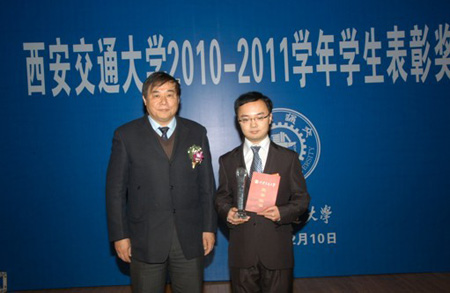 12月11日,在2010-2011学年时博手机平台_时博(中国)“优秀研究生标兵”考核答辩中,我院硕986班齐鹏同学从学习科研、社会实践等方面做报告,展示了我院研究生的风采,受到考核组专家的一致认可与好评,最终获得2011年校级“优秀研究生标兵”荣誉称号。王建华书记逐一为获奖学生颁发了荣誉证书和奖品并和同学们合影留念。这是时博手机平台_时博(中国)自2008年成立以来,我院研究生第二次获得该项荣誉称号。
