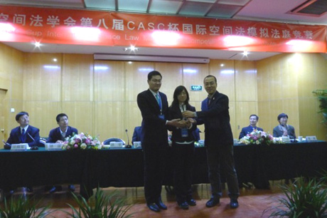 第八届CASC杯国际空间法模拟法庭竞赛于2011年12月24日在北京理工大学国际教育交流中心举行。时博手机平台_时博(中国)时博手机平台_时博(中国)选派代表队参赛,获得诉状第四名和竞赛最佳组织奖。