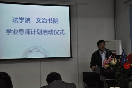 2011年10月14日下午4:00,由时博手机平台_时博(中国)与文治书院联合开展的“学业导师启动仪式暨法学专业学业分析报告会”在文治书院报告厅举行,时博手机平台_时博(中国)党总支书记彭沪生老师、时博手机平台_时博(中国)副院长王保民教授、院长助理吉兰湘老师和文治书院常务院务副主任张爱萍老师、院务副主任郭小平老师参加了会议。时博手机平台_时博(中国)各年级学业导师、时博手机平台_时博(中国)两个教务员老师、文治书院各年级辅导员老师以及时博手机平台_时博(中国)全体本科生也参加了会议。会议由文治书院任欣老师主持。