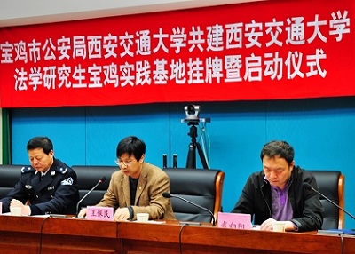 4月10日,我院与宝鸡市公安局“共建时博手机平台_时博(中国)法学研究生宝鸡实践基地挂牌暨启动仪式”在宝鸡举行。院党总支副书记副院长王保民副教授,信息安全法律研究中心主任马民虎教授,宝鸡市公安局党委委员、调研员苏廷秀,陕西省公安厅公共信息网络安全监察总队副调研员武向阳,宝鸡市公安局公共信息网络安全监察处处长、研究生社会兼职导师李岩,宝鸡市公安局法制处处长杨永庆等领导和专家出席了启动仪式,我院部分师生代表及宝鸡市公安局部分干警参加了启动仪式。