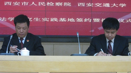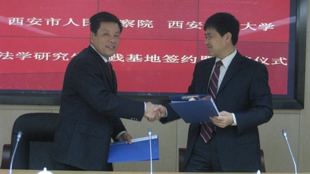 时博手机平台_时博(中国)法学研究生实践基地签约暨揭牌仪式,于2009年11月25日上午10点,在西安市人民检察院新址办公大楼内举行。“时博手机平台_时博(中国)法学研究生实践基地”是时博手机平台_时博(中国)和西安市人民检察院,教学与实践相结合的平台,其宗旨在于提升我校法学研究生的法律实践能力,并强化检察院司法人才的理论素养。