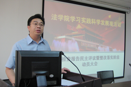 随后,院党总支副书记、学习实践活动领导小组副组长王保民,在会上作了落实整改动员报告。他首先回顾并简要总结了分析检查阶段的工作,其后对下阶段即落实整改阶段的工作做了部署。最后他强调,我们一定要按照学校学习实践活动领导小组的统一部署和要求,结合学院实际,扎实有效地做好整改落实阶段的各项工作,高标准,高质量地完成任务。