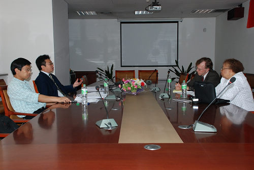 6月3日上午,双方学院领导林肯时博手机平台_时博(中国)院长Steven Lester Willborn教授、副院长Anna Williams Shavers教授与我校时博手机平台_时博(中国)院长单文华教授、副院长副书记王保民副教授,在主楼601会议室,就两院间在师生互访、学术交流和联合办学等方面,展开商谈,并就学生互访、教师互访、科研合作等合作事宜达成初步共识。
