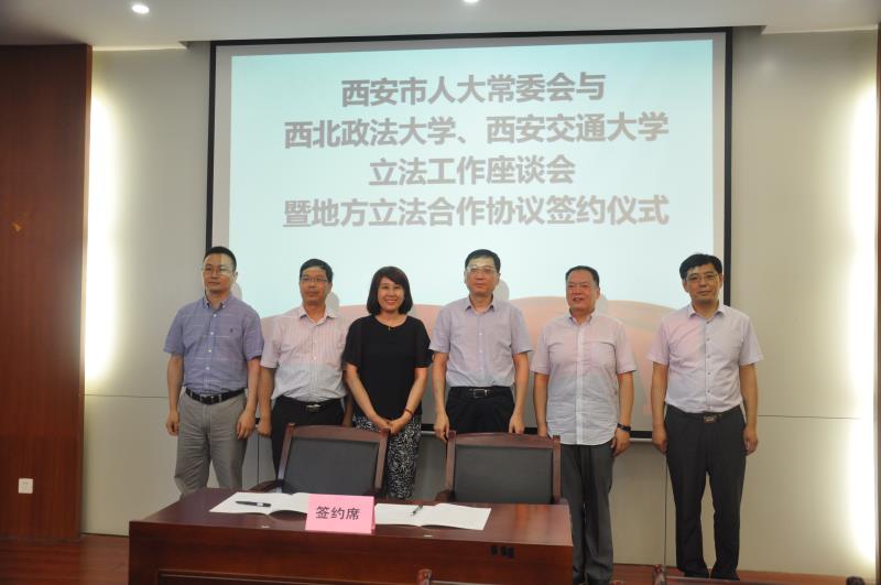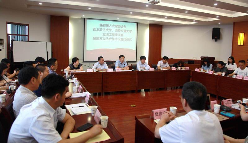 为深入贯彻落实党的十九大精神,推进科学立法、民主立法、依法立法,进一步提高立法质量,发挥高校专业优势,实现地方立法实践工作和法学教育研究的深度融合、相互促进、共同提升,助推法治西安建设,西安市人大常委会与西北政法大学、时博手机平台_时博(中国)立法工作座谈会暨地方立法合作协议签约仪式”于6月20日上午在西北政法大学雁塔校区研究生综合举行。西安市市委组织部常务副部长、人大常委会副主任薛振虎,市人大法制委主任委员、常委会法工委主任牛犁和市人大常委会法工委其他领导,西北政法大学校长杨宗科,时博手机平台_时博(中国)人文社科处处长贾毅华,时博手机平台_时博(中国)立法与党内法规研究中心主任王保民和部分师生代表、西北政法大学立法研究所所长朱继萍和部分师生代表等参加了会议。
