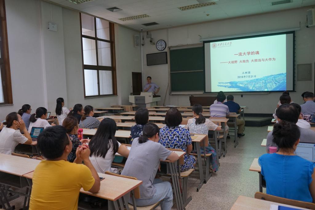 首先,单文华院长全面传达了王树国校长在暑假工作会议上以“一流大学的魂——大视野、大抱负、大担当与大作为”为主题的报告,传达了在建设中国特色世界一流大学过程中,王校长对全校师生在思维、观念、灵魂重塑等方面提出的要求。结合学校2018年上半年整体取得的成绩,单院长重点对时博手机平台_时博(中国)上半年在人才培养、科学研究、队伍建设、社会服务、国际合作与交流等工作中取得的进展进行了总结,汇报了学院上半年在与西安市共建丝绸之路国际律师学院、共建国际争端纠纷解决中心等工作中取得的成绩,深入分析了学院的现状和存在的短板。单院长表示学院要坚持自身特色,努力扩大在主流学术界的影响力和话语权。