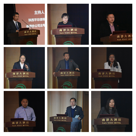 随后,大会进入了“群英会”环节。本环节由陕西标新律师事务所公司专业委员会副秘书长张晗,陕西永嘉信律师事务所合伙人、陕西省律协金融证券专委会委员张璠,陕西平非律师事务所副主任、陕西省律协公司法专业委员会副主任张权,陕西云德律师事务所公司法律顾问事务部首席律师、陕西省律协公司法专业委员会副秘书长杨彩虹依次主持,由张璠、岳玲利、田少荣、王玉苹、勾晓强、任婧、齐精智、刘醒、任永平、崔树森等十名律师对大西安建设中企业创新法律问题进行了深入的探讨,其所涉及的议题丰富,各位发言人见解独到,听众反馈积极,会议气氛热烈,也为今后的学术研究和司法实务开辟了新的视野。最后延安大学政时博手机平台_时博(中国)副院长刘向林,陕西省企业经济法治研究会副会长、时博手机平台_时博(中国)法学副教授张冰,陕西德伦律所主任梁志新,陕西德伦律师事务所律师、西安市律协公司法专业委员会委员韩小春对十名律师的报告进行了精彩纷呈的点评。