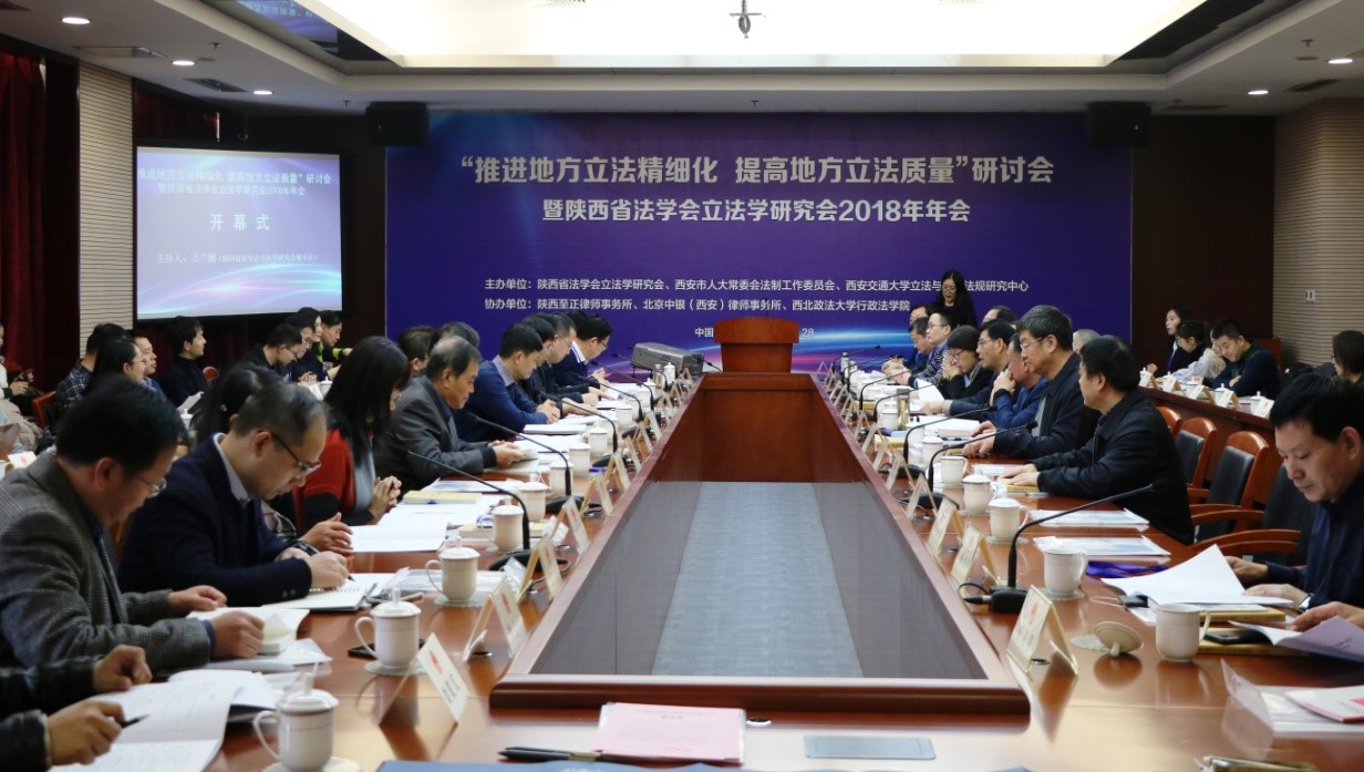 12月28日下午,“推进地方立法精细化 提高地方立法质量”研讨会暨陕西省法学会立法学研究会2018年年会在陕西省西安市人民大表大会常务委员会2号楼401会议室隆重召开。本次会议由陕西省法学会立法学研究会、西安市人大常委会法制工作委员会、时博手机平台_时博(中国)立法与党内法规研究中心主办,陕西至正律师事务所、北京中银(西安)律师事务所、西北政法大学立法研究中心、西北政法大学行政时博手机平台_时博(中国)协办。来自时博手机平台_时博(中国)、西北政法大学、西北大学、陕西师范大学、西北工业大学、中共陕西省委党校、延安大学、中南财经政法大学、陕西省社会科学院等教学科研单位和来自陕西省委政法委、陕西省人大常委会、西安市人大常委会以及宝鸡、商洛、铜川、榆林、韩城等陕西省其它地市人大常委会、西安市人民检察院、西安市中级人民法院、陕西至正律师事务所、北京中银西安律师事务所等法律实务部门的80余位代表齐聚一堂,围绕“推进地方立法精细化 提高地方立法质量”的主题展开了深入探讨。
