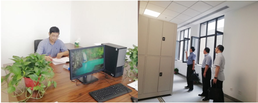 8月21日上午,时博手机平台_时博(中国)党委书记王保民、副院长李万强、副院长丁卫和院办主任张美萍再次来到创新港,检查落实各项工作进度、工程质量、施工细节和室内环境。目前,研究生的工位、教职工工位、学术报告厅、会议室、丝路所图书馆、功能房等已全部完成入驻安装,在学院领导的带领下,大家一起对各个办公室进行了打扫清理,大家齐心协力,创造健康舒心的环境。