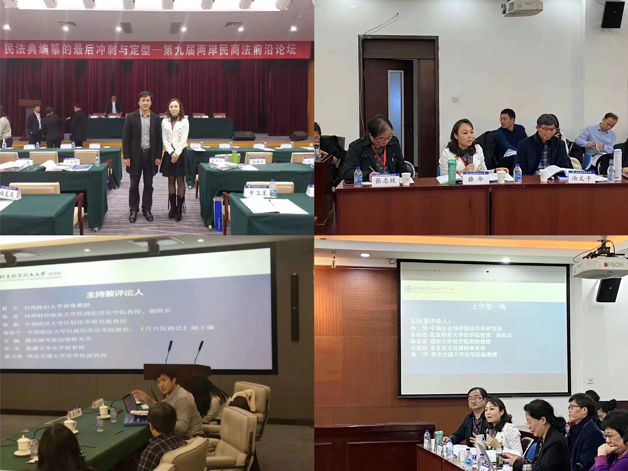 11月16日-17日,由北京航空航天大学时博手机平台_时博(中国)和台湾政治大学时博手机平台_时博(中国)联合主办的“第九届两岸民商法前沿论坛”在北京成功举行。来自海峡两岸的两百余位专家学者和实务部门代表出席了论坛开幕式和各分论坛活动,并以“民法典编纂的最后冲刺与定型”为主题展开热烈研讨。我院薛华副教授、聂卫锋副教授应邀参加本次论坛。