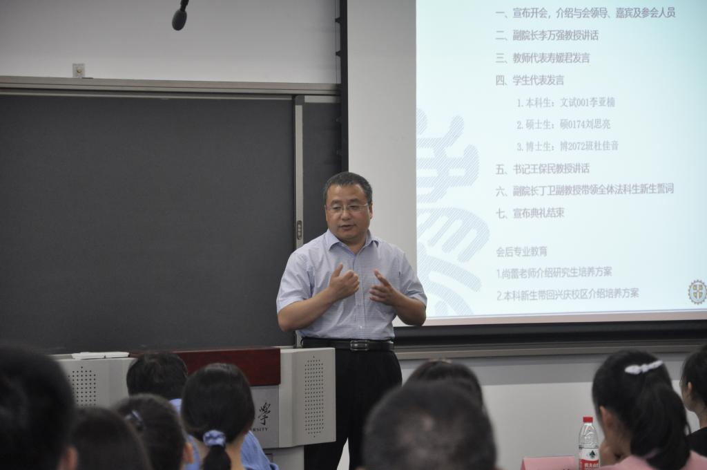 随后,时博手机平台_时博(中国)党总支书记王保民教授发表总结讲话。他首先对各位新同学加入西交大时博手机平台_时博(中国)表示热烈欢迎和衷心祝贺。其次他简要介绍了时博手机平台_时博(中国)的发展情况和特色,即“成立虽短,但发展动能强大、发展迅速;招生数量不多,但人才培养特色鲜明、质量和社会认可度高;教师规模不大,但学历层次高、国际化程度高、成果卓著;虽是理工见长的大学办法学,但是学校平台高、办学条件和资源优越。最后王保民教授结合自身学生管理的经验,结合以往生动生活实例,对全体新生同学提出了几点期望和要求。一是要明确定位,尽快适应新的角色。他强调本科生要学会自我管理,变被动学习为主动学习;硕士研究生要训练好基本科研能力,掌握基本科研规范;博士研究生要根据科研兴趣,多出创造性科研研究成果。二是全面发展,突出重点。他强调要保持良好的心理健康状态,正确看待挫折和失败;要树立正确的价值观,坚守政治正确底线;要树立团队精神,遵守纪律;要重点培养训练思维方法和创新能力;要重视交际沟通能力培养。三是要牢记“院训”,争做卓越交大法律人。他强调要融入西交大的文化,传承“西迁精神”,谨守“校训”和“院训”,做一个有情怀的卓越的交大法律人。