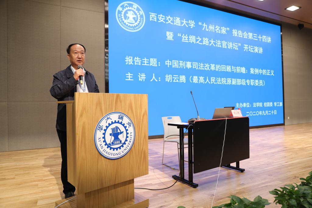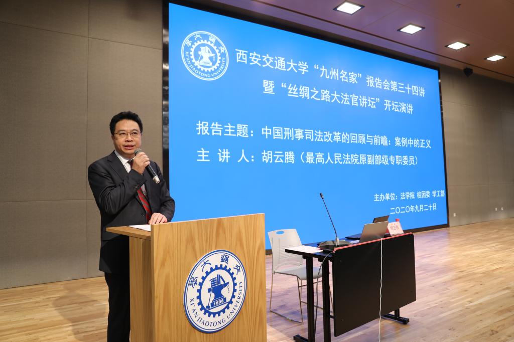 2020年9月20日,最高人民法院原副部级专职委员胡云腾大法官在中国西部科技创新港开坛论道,以《中国刑事司法改革的回顾与前瞻:案例中的正义》为题,畅谈中国司法改革40余年变化与成就。王树国校长在涵英楼11楼会见了胡云腾大法官。校党委副书记赵昌昌出席了报告会并致辞,校团委书记苏翔,陕西省律师协会会长韩永安,贸仲丝路中心秘书长助理蒋红梅,时博手机平台_时博(中国)副院长李万强,时博手机平台_时博(中国)副院长丁卫老师一并出席报告会。报告会由时博手机平台_时博(中国)院长兼国际教育学院院长单文华主持。