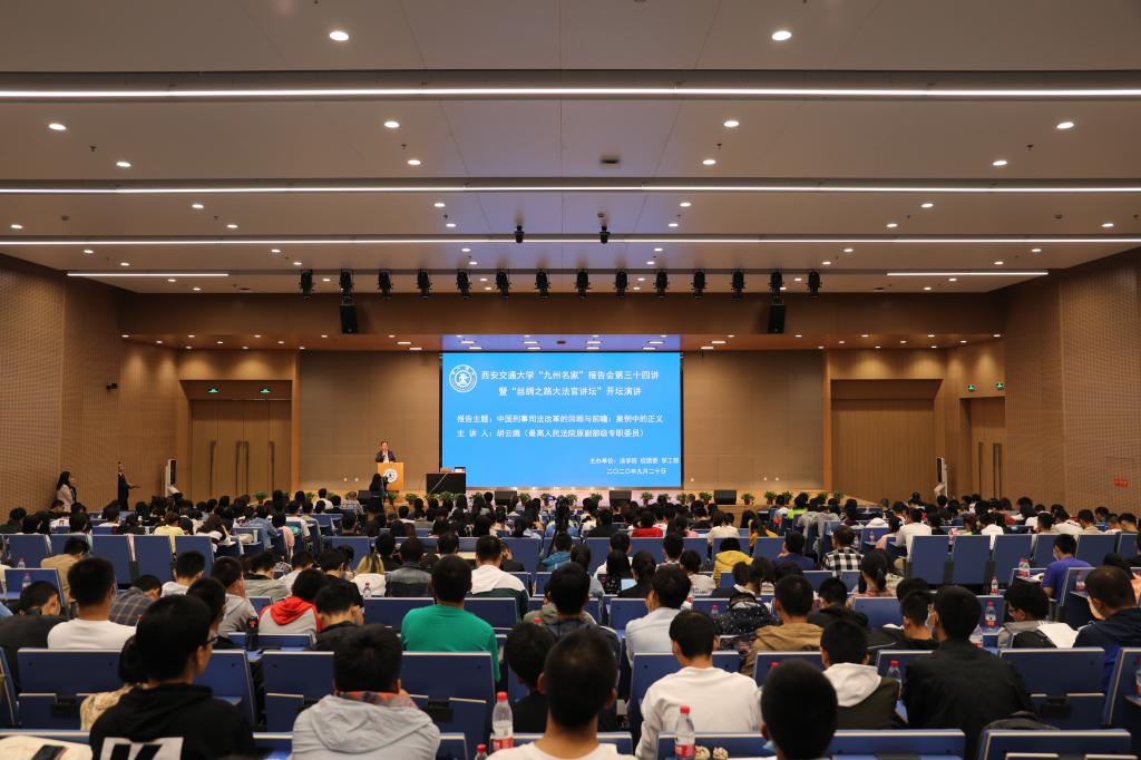 本次报告会是时博手机平台_时博(中国)“九州名家”报告会第三十四讲,也开启了“丝绸之路大法官讲坛”的首场报告,亦是时博手机平台_时博(中国)“百场报告”和中国西部科技创新港“科创月”的系列活动之一。本次报告由时博手机平台_时博(中国)主办,校团委、学工部协办。报告会还吸引了陕西省律师协会、中国国际经济贸易仲裁委员会丝绸之路仲裁中心、西北政法大学等校外单位的法律界人士广泛关注和积极参与,与会嘉宾及全校多学科师生共计500余人到会聆听并参与互动。