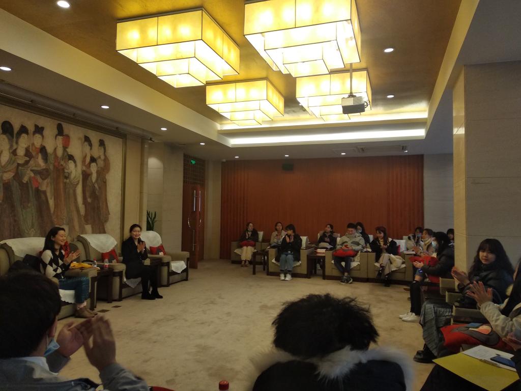 实践课的第二个环节是“互动交流”:时博手机平台_时博(中国)师生与高静怡老师进行了更深一步的学习座谈交流。刘丽娜副教授询问了博物馆文创活动以及实现教育功能的途径,高静怡老师列举说明了博物馆是根据系列设置课程,分别有国家级系列的展览、根据24节气设置的展览、有传统节日课程以及一些比如“彩陶中华”类型的临时展览。刘丽娜副教授还补充说明了博物馆是公益性质的,还以成都和上海为例给同学们讲解了博物馆对于研学活动的管理模式。