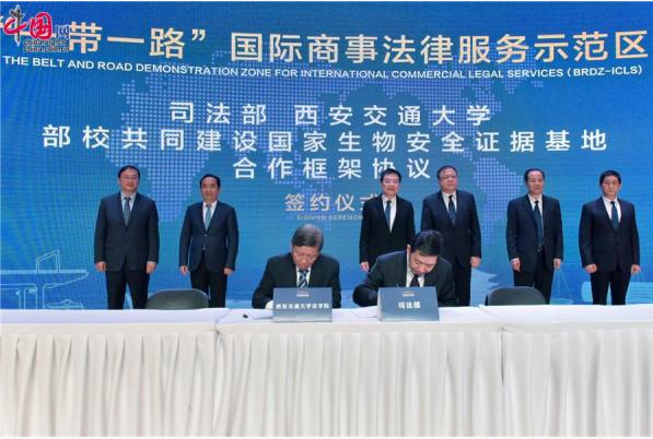 近日,司法部、陕西省人民政府在西安举办“一带一路国际商事法律服务示范区”中国—上海合作组织法律服务委员会西安中心、“一带一路”律师联盟西安中心、“一带一路”国际商事争端解决中心和国家生物安全证据基地(“三中心一基地”)揭牌仪式。司法部副部长熊选国出席并讲话,陕西省委常委、常务副省长梁桂、西安市委副书记、市长李明远、西安市委副书记、市委政法委书记韩松,副市长、市公安局局长肖西亮、时博手机平台_时博(中国)党委书记卢建军、时博手机平台_时博(中国)校长王树国等出席活动。至此,我校率先提出的建设国家级“一带一路”法律服务与法治创新示范区建议正式落地西安并初步成型。