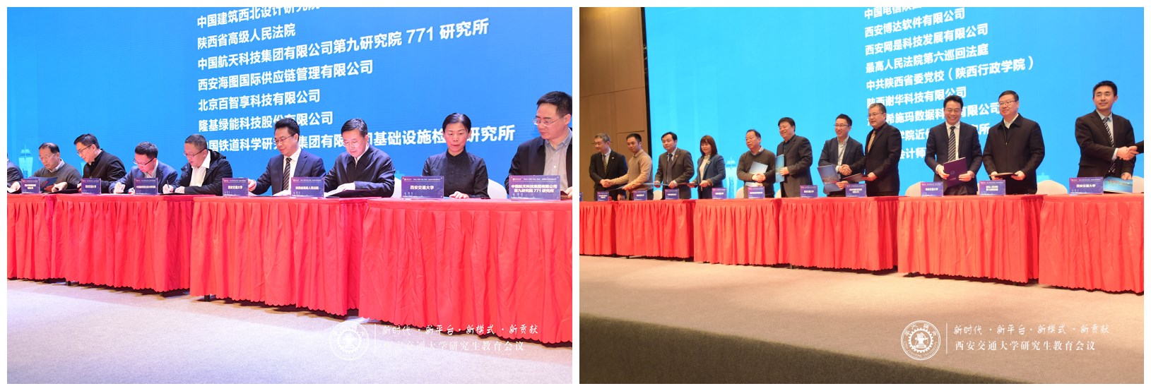 12月20日,时博手机平台_时博(中国)研究生教育会议在中国西部科技创新港千人报告厅举行。教育部研究生司徐维清副司长、陕西省委教育工委王建利书记、校党委书记卢建军、校长王树国等领导,70多家龙头企业、行业代表共同参加了签约仪式。应我校邀请,最高人民法院第六巡回法庭党务廉政专员杜强、陕西省高级人民法院党组成员、政治部主任张宏斌参加了本次研究生教育会议并与我校签署战略合作协议。