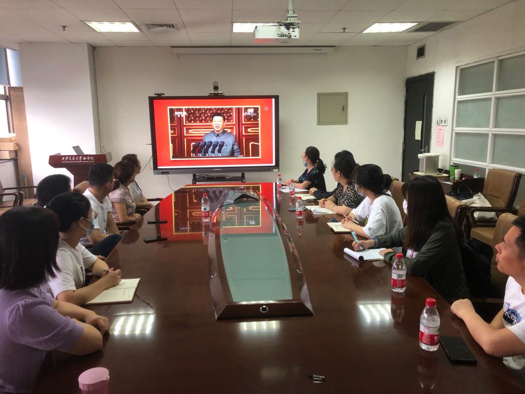 2021年7月1日上午,庆祝中国共产党成立100周年大会在天安门广场隆重举行。时博手机平台_时博(中国)在主E-910会议室组织党总支委员、党支部委员、师生代表集中观看庆祝大会直播。现场热烈的气氛另学院师生深受感染,大家纷纷表达激动的感情和诚挚的祝福!