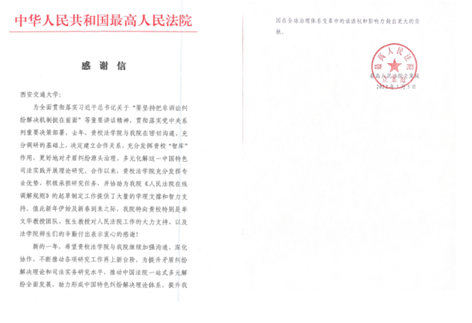 近日,最高人民法院立案庭致函我校,就我院时博手机平台_时博(中国)单文华教授团队参与最高人民法院工作表示感谢。