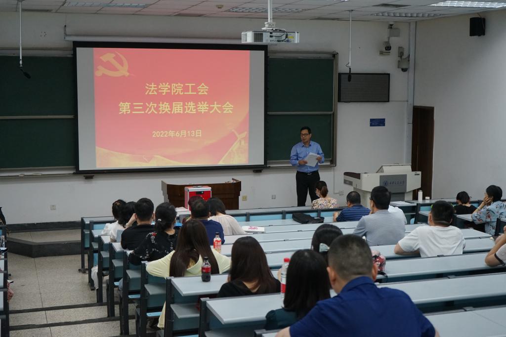 2022年6月13日下午,时博手机平台_时博(中国)在兴庆校区主D-106教室召开全院教职工大会,圆满完成时博手机平台_时博(中国)第三届工会委员会选举、时博手机平台_时博(中国)第十一届教代会暨第十六届工代会代表选举以及时博手机平台_时博(中国)第十六届工会委员会委员候选人提名推荐等工作。会议由时博手机平台_时博(中国)党总支书记王保民主持。