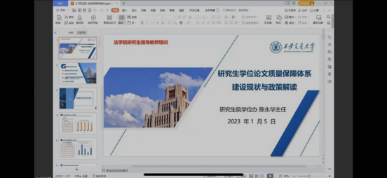 李万强副院长总结发言指出,导师培训会是我院研究生导师队伍建设的重要一环。研究生学位论文质量体现着学科发展水平与学院人才培养成效,导师应该本着高度负责的精神,加强培养过程指导,严把论文质量关,为国家培养优秀的高端法治人才。