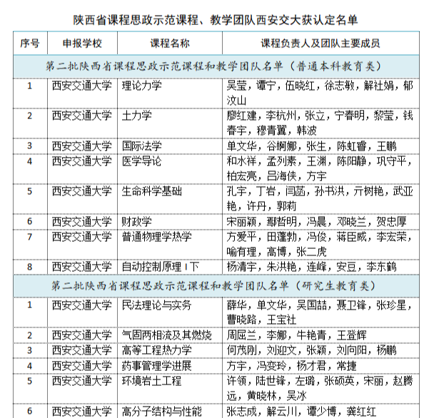 日前,陕西省教育厅公布了第二批陕西省课程思政示范课程、教学团队认定结果,我院本科课程《国际法学》、研究生课程《民法理论与实务》力获省级课程思政示范课,同时,两个教学团队被认定为省级课程思政教学团队。