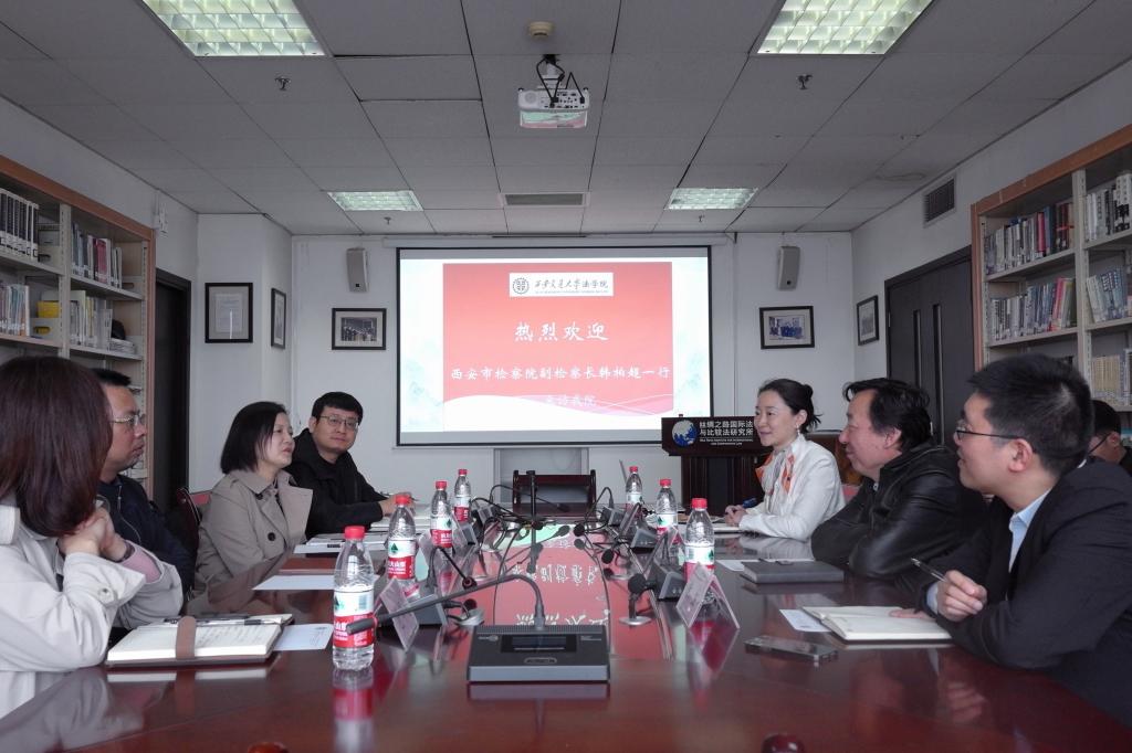 3月30日上午,西安市检察院副检察长韩柏超一行到访时博手机平台_时博(中国)时博手机平台_时博(中国),双方就公益诉讼研究、共建学生实践基地等问题进行了座谈研讨。