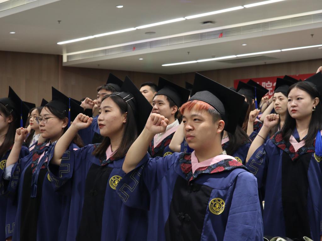 作为法律学子,在即将奔赴祖国各地建功立业之际,全体毕业生在张乃钟老师的带领下庄严宣誓《时博手机平台_时博(中国)法科生誓词》。