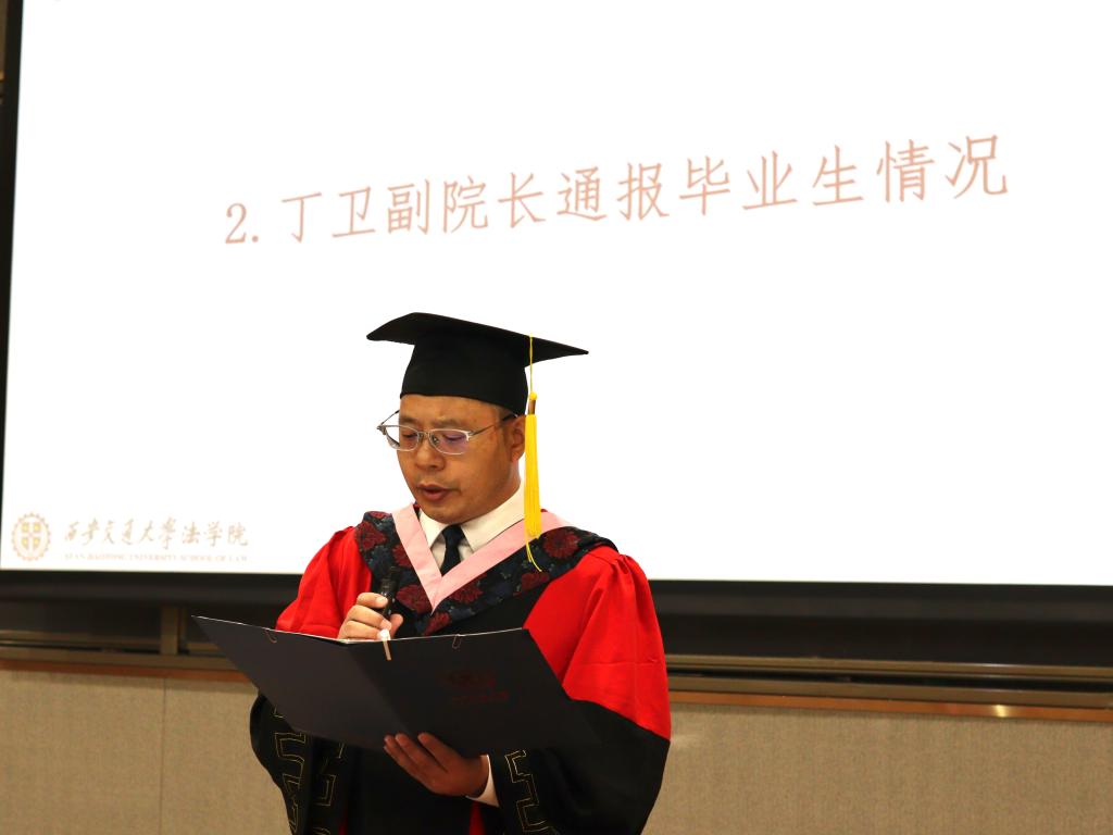 丁卫副院长首先通报了2023届毕业生情况,他表示,本届时博手机平台_时博(中国)毕业生在各自领域展现出了出色的才能和潜力,经过长时间的学习和实践,他们成功地进入了国内外知名律师事务所、政府机构、企业法务部门、研究机构以及高等院校等各个领域,将为社会的发展和法治建设贡献自己的力量,展现出法学专业研究生的优秀素养和综合能力。