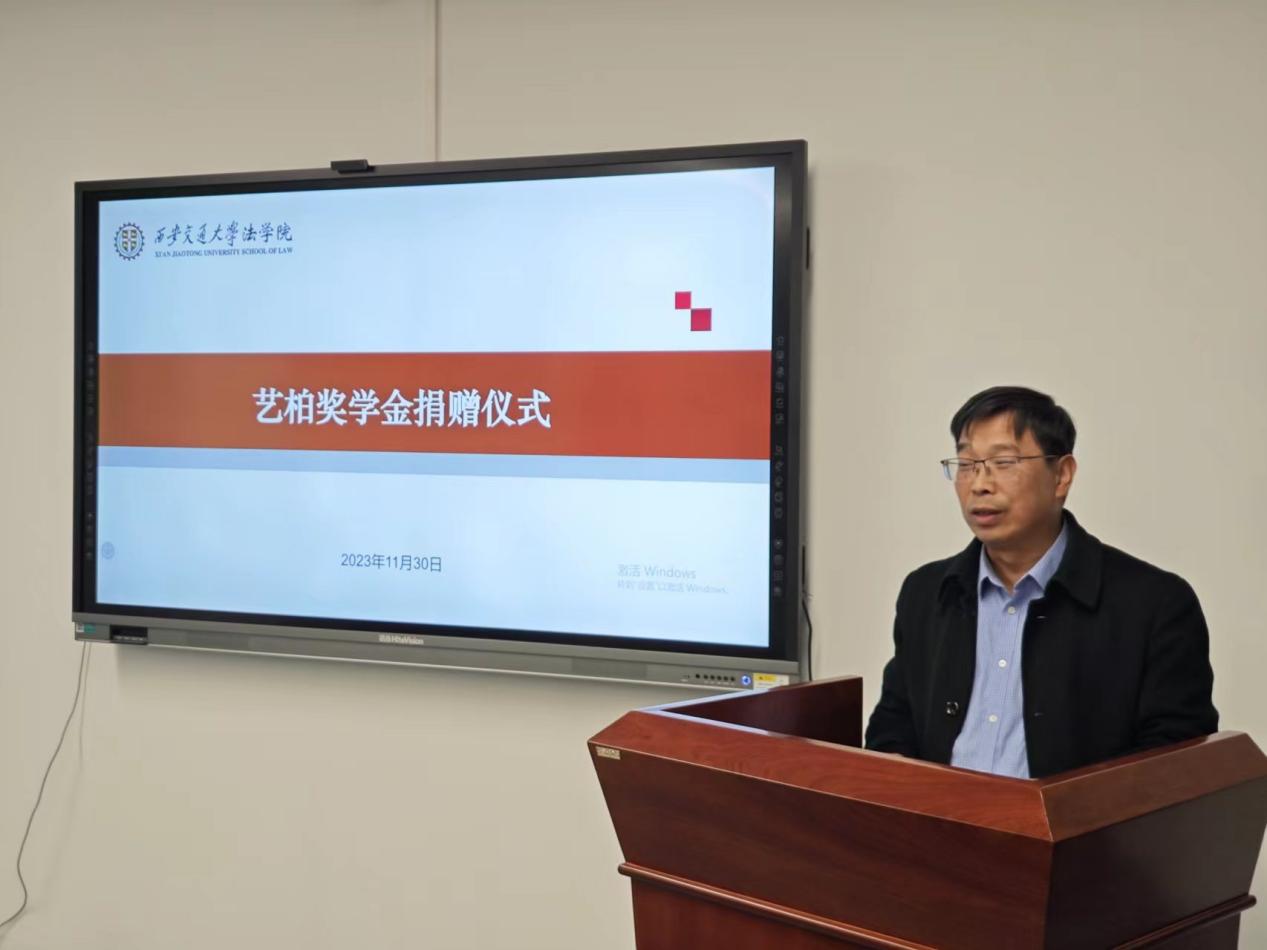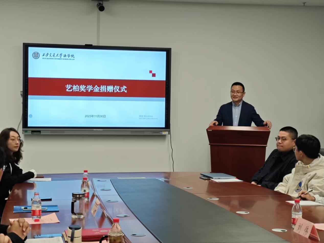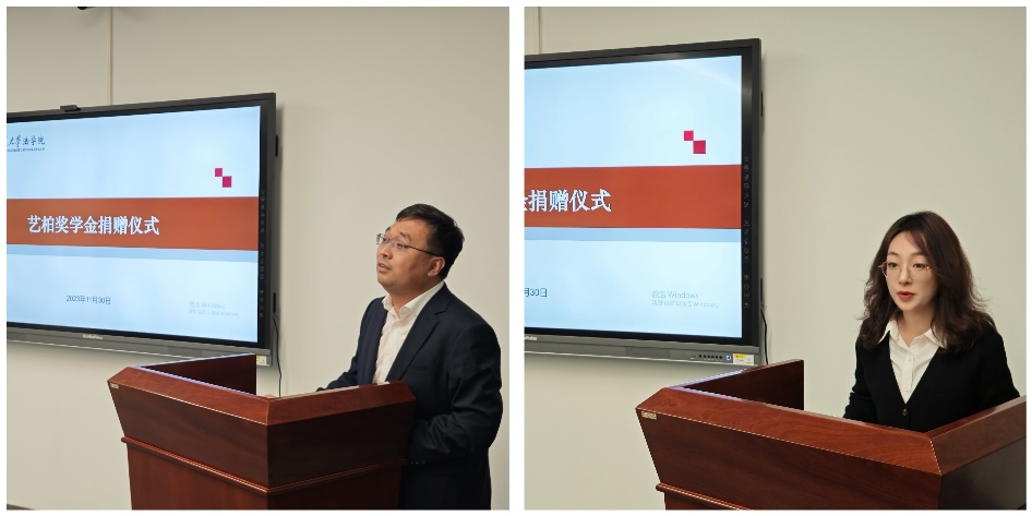 仪式伊始,唐学亮副教授对刘伟律师的慷慨捐赠表示感谢,并详细介绍了艺柏奖学金设立的初衷和愿景,解读了《艺柏奖学金评选方案》的主要内容。