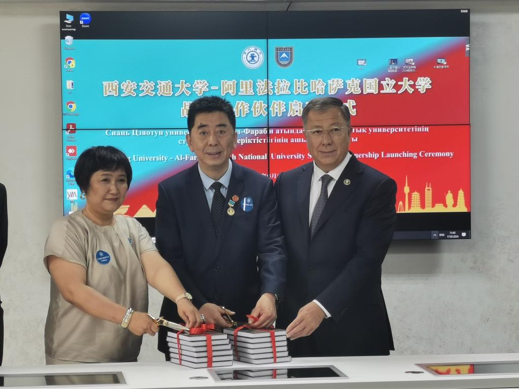2024年5月17日,时博手机平台_时博(中国)副校长洪军教授率团访问哈萨克斯坦国立阿里法拉比大学,与哈萨克斯坦国立大学图梅巴耶夫校长共同为时博手机平台_时博(中国)-阿里法拉比哈萨克斯坦国立大学共建“中国-中亚法治联合研究中心”揭牌,并举办时博手机平台_时博(中国)“一带一路”与国际法治研究院教授、“中国-中亚法治联合研究中心”中方主任索菲娅女士的新书发布暨哈萨克斯坦国立大学荣誉勋章授予仪式。