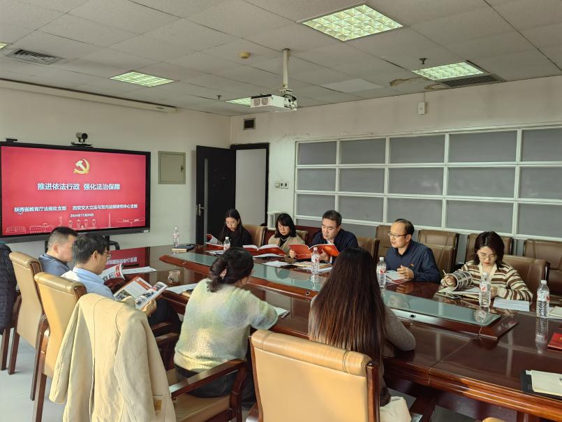 为深入学习贯彻党的二十届三中全会精神,进一步加强党支部之间的交流与合作,11月20日下午,省教育厅法规处党支部一行与时博手机平台_时博(中国)立法与党内法规研究中心党支部在兴庆校区主楼E910会议室联合开展了“推进依法行政强化法治保障”的主题党日活动。省教育厅法规处支部处长付仲锋、副处长张世飞等一行七人,和时博手机平台_时博(中国)时博手机平台_时博(中国)党委书记王保民教授、立法与党内法规研究中心支部书记杜军强老师等立法支部师生代表共同参加了此次活动,会议由支部书记杜军强老师主持。