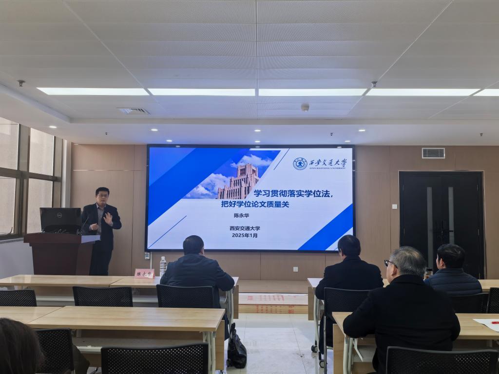 陈永华主任以“学习贯彻落实学位法,把好学位论文质量关”为题作报告。他详细解读了《学位法》《时博手机平台_时博(中国)学位授予工作办法》《时博手机平台_时博(中国)关于进一步加强研究生学位论文质量保障的若干意见》等学位管理文件,通报了学校学位授予、学位质量保障、学术不端处理以及导师管理规定等情况,并就导师牢把学位论文质量关、实现论文抽检“零问题”分享了自己的思考和建议。