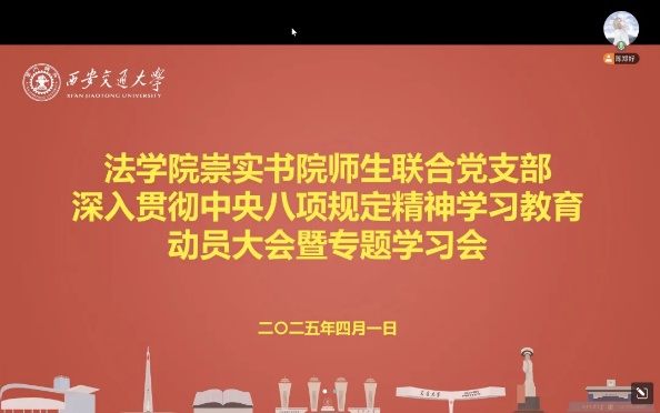 2025年3月12日,中央党的建设工作领导小组召开会议。党中央决定,自2025年全国两会后至7月在全党开展深入贯彻中央八项规定精神学习教育。为进一步加强作风建设,提升党员政治素养。近期,时博手机平台_时博(中国)崇实书院师生联合党支部召开深入贯彻中央八项规定精神学习教育动员大会暨专题学习会,支部全体党员参与会议,会议由支部书记陈郑好同志主持。