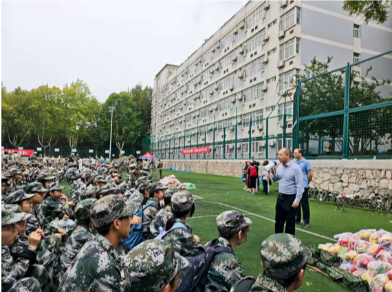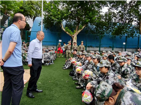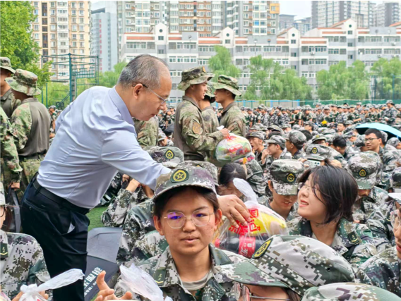 之后,丁卫副院长、工会主席吴锐一起将慰问品送到教官、指导员和同学们的手中,为军训的紧张节奏中增添了亲切关怀的温度。