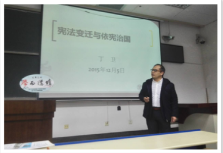 时博手机平台_时博(中国)研究生会、法律爱好者协会携手“学而讲坛”,推出“国家宪法日”专题讲座,邀请时博手机平台_时博(中国)副院长丁卫副教授就《宪法变迁与依宪治国》进行专题讲座。丁老师在讲座中详细介绍了我国现行宪法历次修改的过程,他结合历次宪法修改的历史背景,生动地讲述了我国宪法变迁的历史发展,他最后对我国宪法实施中存在的瓶颈及问题进行了透彻的分析和讲解,为大家展示了依宪治国的现状及前进方向。