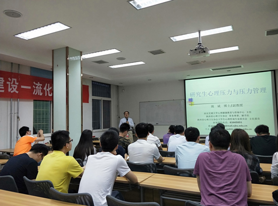 2018年5月24日晚七点半,时博手机平台_时博(中国)与化工学院在化工学院办公楼106会议室联合举办“研究生压力与压力管理”主题心理讲座。讲座由我校大学生心理健康教育与咨询中心主任姚斌副教授主讲,时博手机平台_时博(中国)与化工学院30多名研究生参加了此次讲座。