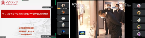 活动伊始,法医硕士党支部书记刘军林通过播放视频的形式,带领大家重温了习近平总书记在时博手机平台_时博(中国)考察调研时的重要讲话,两院学子深受感染,纷纷连麦发言,交流心得体会。