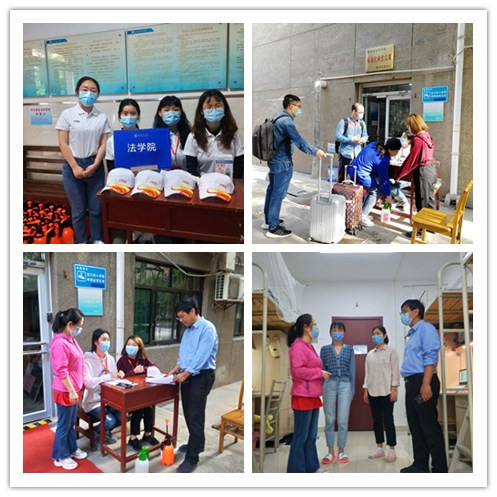 王保民书记和张乃钟老师与同学们亲切交谈,了解疫情期间学生的生活学习状态。王保民书记叮嘱学生,在此特殊时期要严格遵守学校防控疫情的相关规定,保持高度的防范意识,强调返校学生要尽快转变心态,合理安排好学业、科研、就业、生活,以积极向上的面貌迎接返校生活。张乃钟老师希望学生注意个人卫生和寝室卫生,坚持填报“健康每日报”,并提醒大家做好个人防护,嘱咐学生天凉加衣,避免着凉。首批返校的学生刘敏感慨地说:“踏入校园的那一刻就感受到学校和学院的对疫情防控工作的尽职尽责,看到辛苦工作的老师和志愿者心里是满满的踏实和感动。十分感谢学院老师的关心呵护,真切的询问和叮嘱让我倍感温暖。在这个特殊时期,大家仍旧充满干劲,我要以更好地状态重新投入到紧张的科研学习中。”